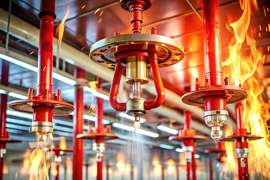 Once the detection system confirms the fire, the pre-action valve opens, allowing water to fill the sprinkler piping. Water is discharged only when the sprinkler heads activate due to heat, ensuring accurate fire suppression while preventing accidental discharge.